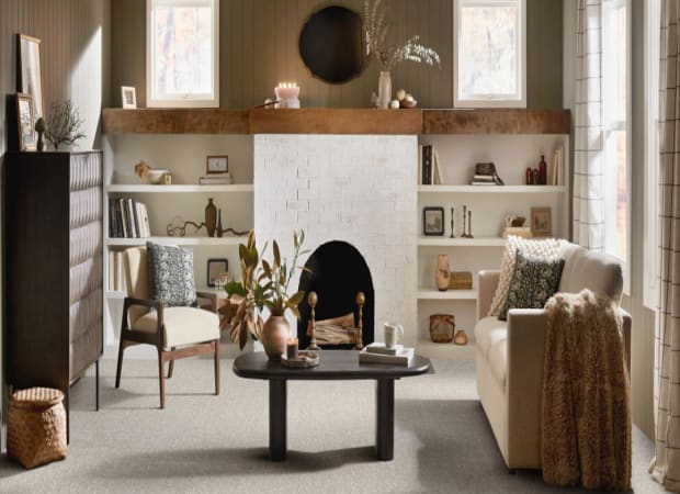 Clever Blend carpet showcases a sophisticated and versatile neutral color palette, seamlessly complementing your existing paint colors while its ingenious design effortlessly conceals traffic and soiling, maintaining the pristine allure of your space at an incredible value.